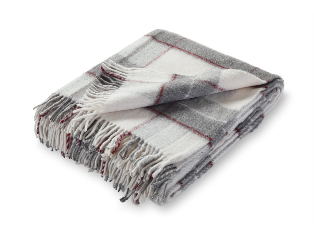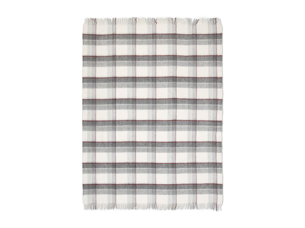 Pled din lână cu franjuri roșu-gri, lână de miel SFAT! lână foarte fină!