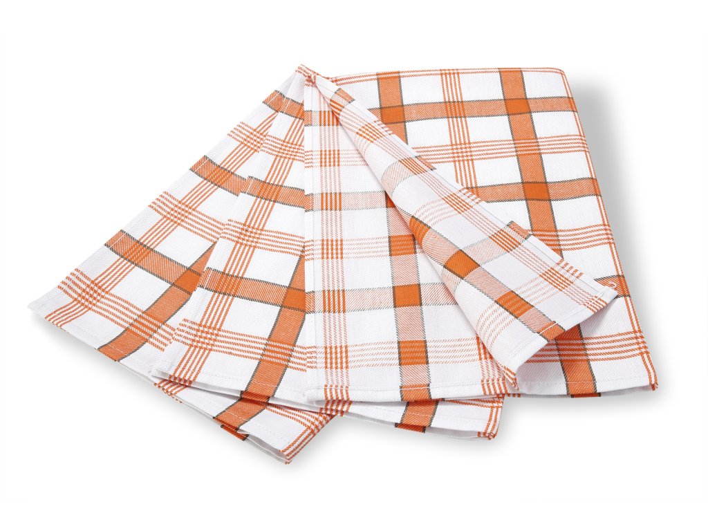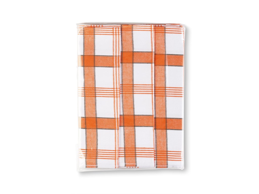 Prosoape de bucătărie practice din bumbac egiptean în portocaliu și alb, cu un motiv în carouri. Bumbacul egiptean este recunoscut la nivel mondial ca fiind unul dintre cele mai calitative tipuri de bumbac din lume. Prosoapele de bucătărie din bumbac sunt foarte populare pentru absorbția și rezistența lor ridicată. Un mare avantaj este faptul că materialul nu lasă fibre. Prosoapele au un design original și vor deveni un ajutor practic în bucătăria dvs.