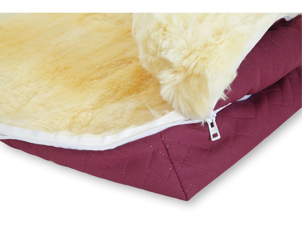 Material: 100% piele de oaie / țesătură impermeabilă nețesută, Dimensiune: 90 x 40 x 16 cm, Culoare: suprafața este roșu burgundy, blana interioară este de culoare deschisă, Potrivit pentru scaune auto: da - găurile sunt cusute în spate pentru atașarea la scaunul auto sau cărucior