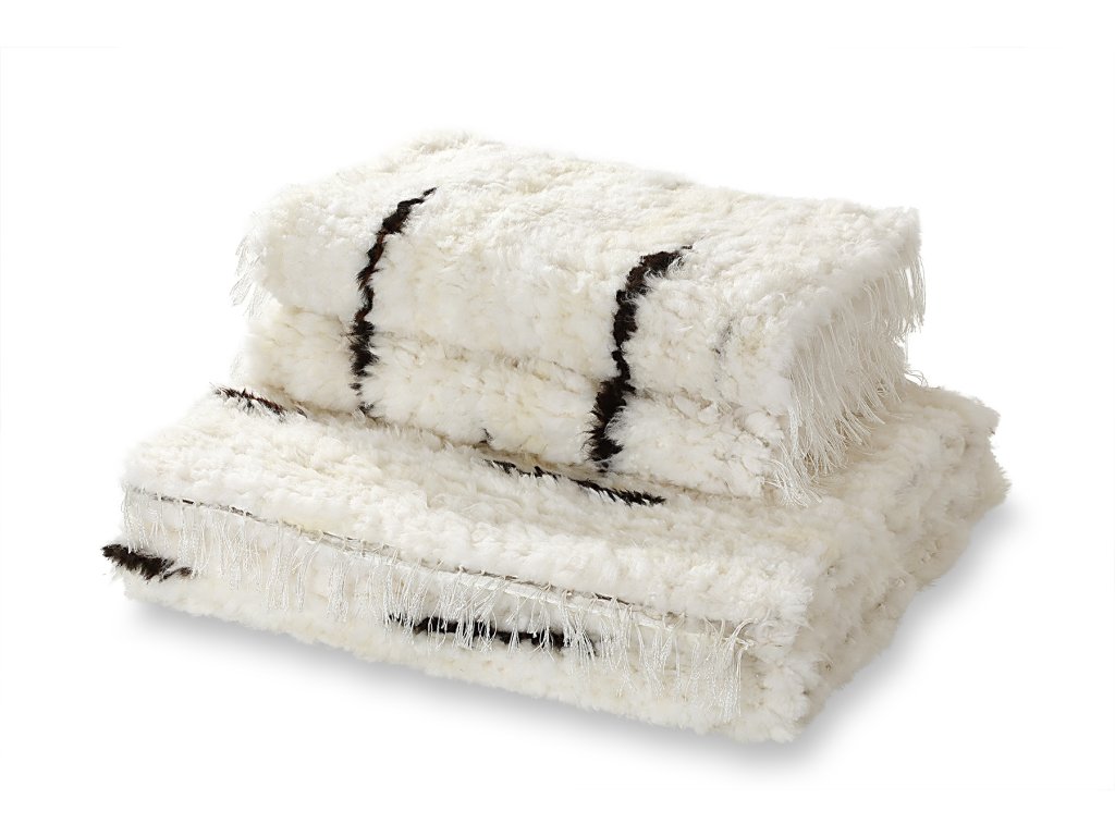 Covoare decorative țesute din materiale naturale, care vin într-un singur set. Acest set de covoare țesute originale și unice este format din trei piese în total. Covorul mare are dimensiunile de 160 x 200 cm, covorașele mici au dimensiunile de 60 x 160 cm. Covoarele sunt țesute din mai multe tipuri de piei colorate. Covorul este crem deschis, mai degrabă galben în jurul perimetrului. Covorul alternează benzi de blană crem deschis cu benzi de blană într-o combinație de nuanțe de maro închis. Impresia generală a acestui set de covoare țesute este unică și deosebită. Datorită metodei de țesere utilizate, covorul are un aspect tradițional. Covorul combină elemente de culoare închisă cu elemente de culoare deschisă. Astfel, acesta este un accesoriu original și unic pentru orice interior. Execuția este foarte precisă și fiecare piesă este un original, care poate fi expus frumos în sufragerie, holul spațios sau în dormitor.
