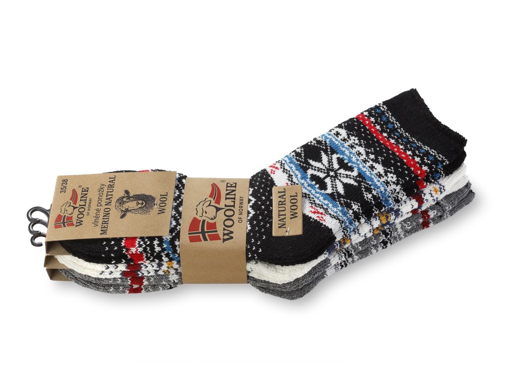 Set de șosete călduroase din lână Wooline Natur, tip de lână foarte fină și moale. Setul de șosete din lână conține 3 perechi de șosete cu diferite motive. Motivele corespund cu motivele din imaginea afișată. Datorită materialului utilizat, șoseta se adaptează la mărimea piciorului.