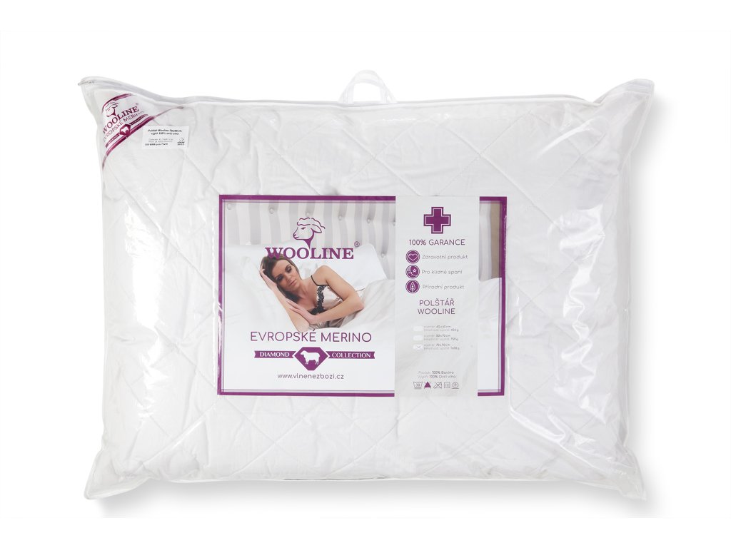 Material: capac 100% bumbac, umplutură 100% lână de oaie, Dimensiune: cuvertură 140 x 200 cm, pernă 70 x 90 cm, Culoare: alb, Design: matlasat, Greutatea umpluturii: pernă 1600g, cuvertură 1000g