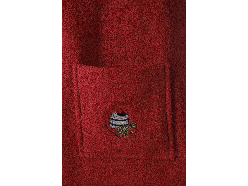 Șorțul de saună de înaltă calitate pentru femei, confecționat din bumbac moale 100% în roșu închis, este un articol de îmbrăcăminte pentru saună foarte practic. Șorțul acoperă corpul și absoarbe excesul de umiditate. Șorțul de saună este ușor de fixat cu Velcro în față.