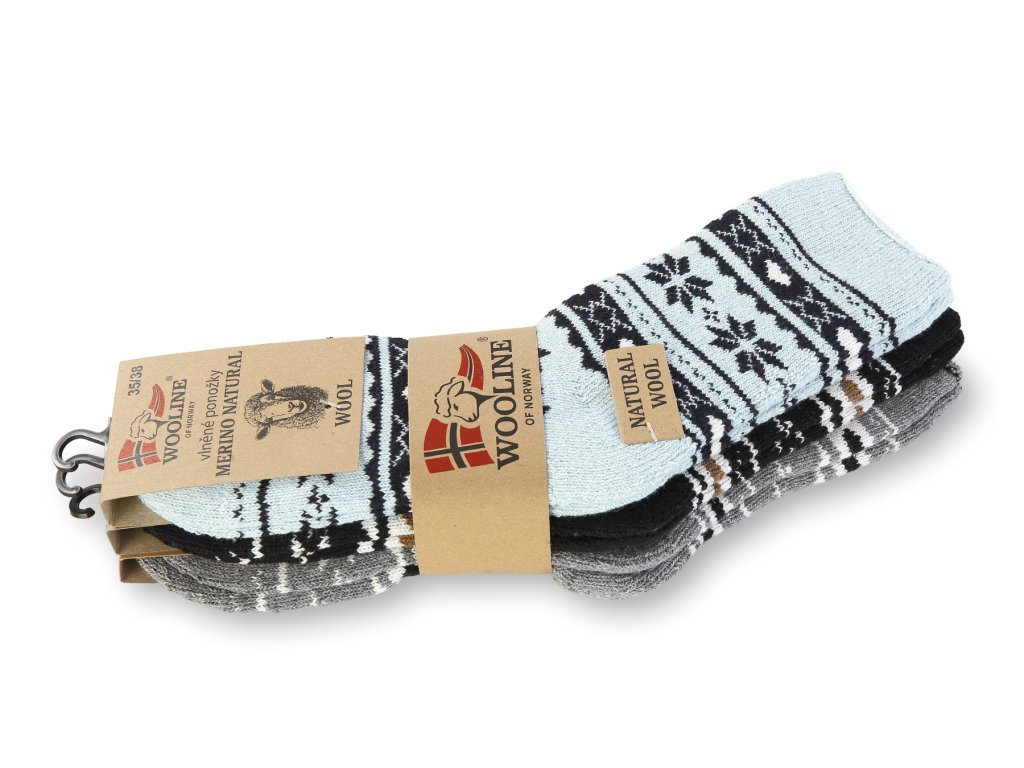 Set de șosete călduroase din lână Natural Wooline Wool dintr-o lână foarte fină și moale. Setul de șosete din lână conține 3 perechi de șosete cu diferite motive. Motivele corespund cu motivele din imagini. Datorită materialului utilizat, șoseta se adaptează la mărimea piciorului.