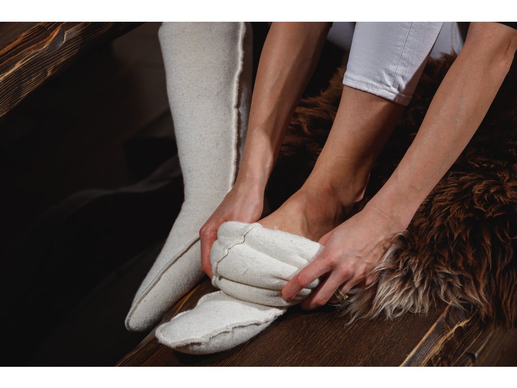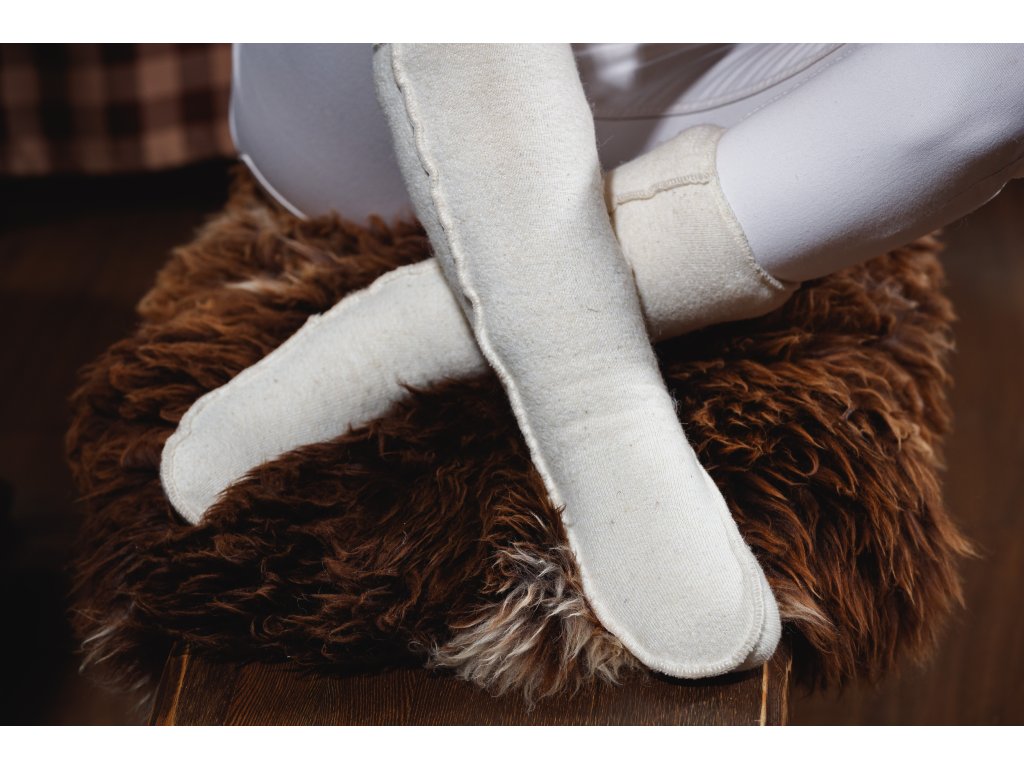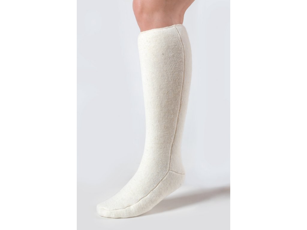 Șosetele de compresie până la genunchi sunt confecționate din lână naturală de oaie netoarsă, 100% Merino Australian cu adaos de Lycra. Șosetele se mulează pe forma piciorului, iar lâna de oaie netoarsă creează o căldură uscată, care are un efect benefic asupra părții solicitate a corpului. Șosetele de compresie se îmbrăcă pe picior. Datorită fibrelor Lycra, se mențin perfect și nu alunecă în timpul mișcării. Sunt potrivite și în condiții de lucru dificile. Pe corpul gol, lâna de oaie netoarsă masează terminațiile nervoase și elimină ionii nocivi pentru organism, care sunt cauza oboselii și a durerilor de cap.