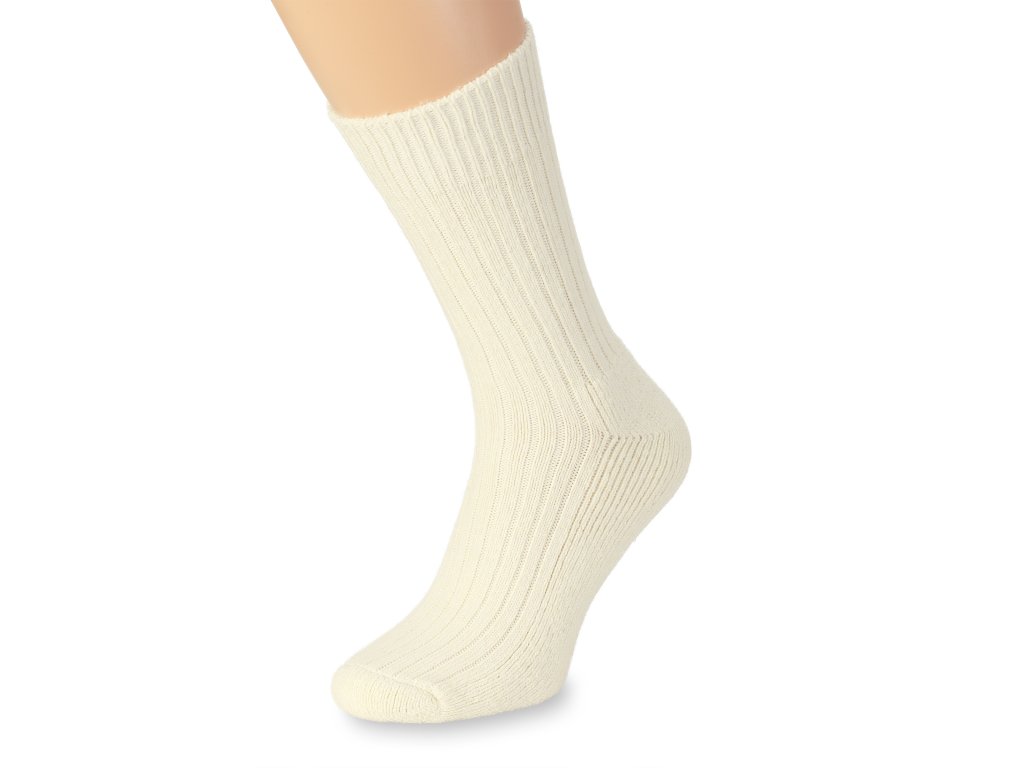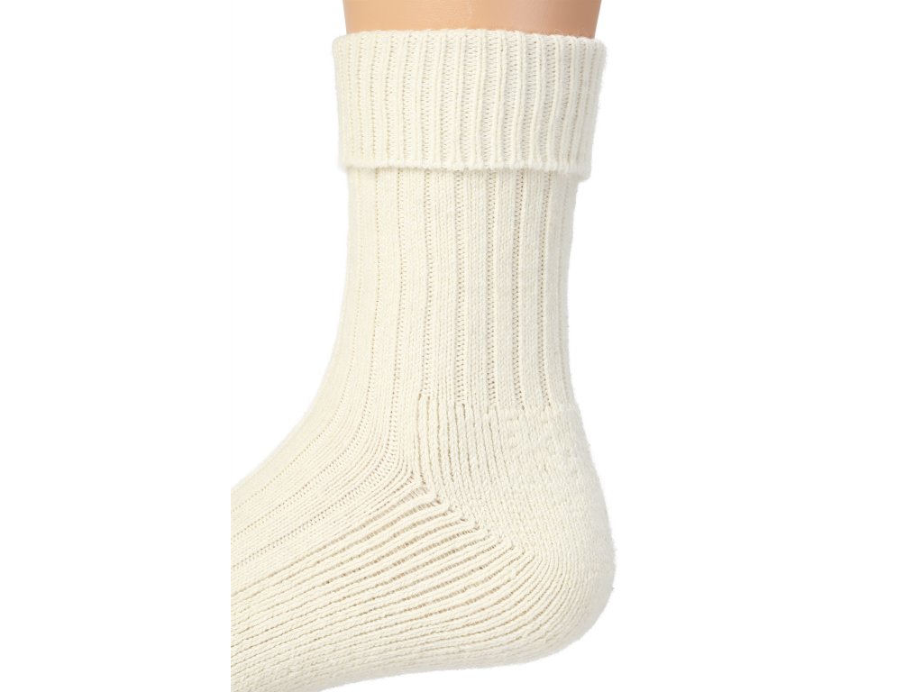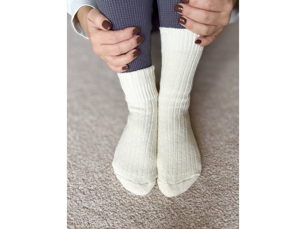 Set de șosete călduroase din lână Merino Natural Wool dintr-o lână foarte fină și moale. Sosetele sunt moi și delicate la atingere. Setul de șosete din lână călduroase conține 2 perechi de șosete de culoare crem deschis. Datorită materialului utilizat, șoseta se adaptează la mărimea piciorului.
