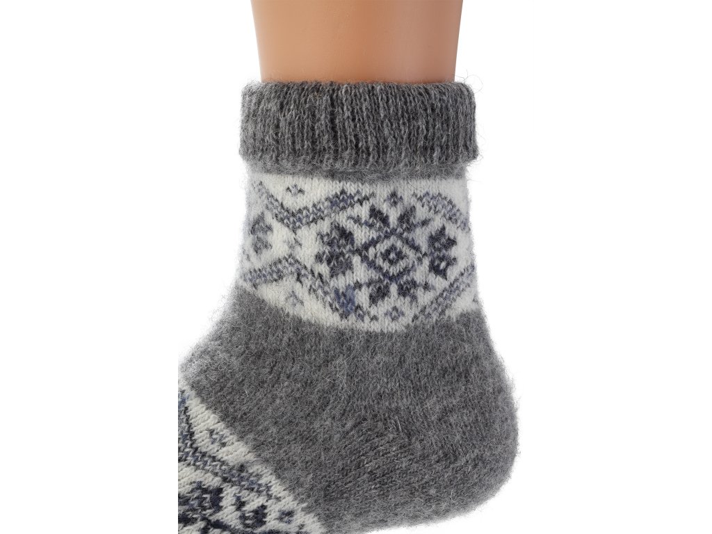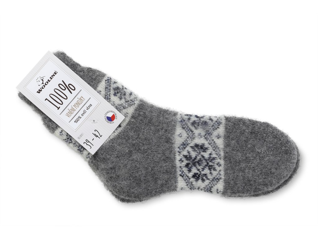 Șosetele din lână cu motiv, sunt tricotate la mașină din 100% lână de oaie, care este moale și foarte fină la atingere. Datorită materialului utilizat, șoseta se adaptează la mărimea piciorului.