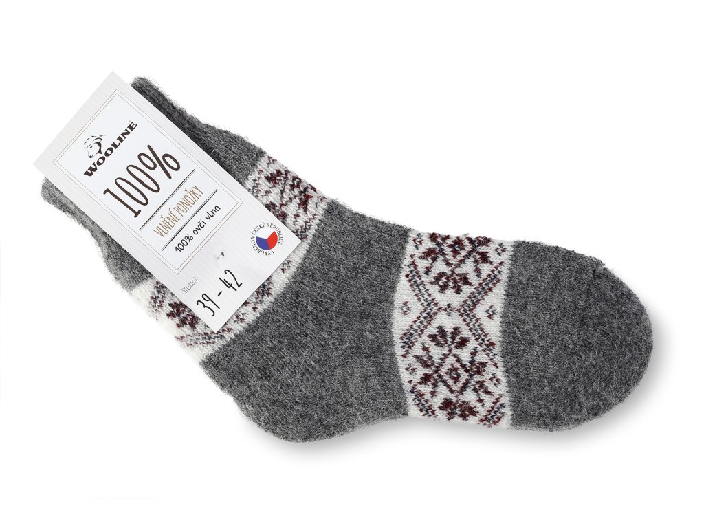 Șosetele din lână cu motiv, sunt tricotate la mașină din 100% lână de oaie, care este moale și foarte fină la atingere. Datorită materialului utilizat, șoseta se adaptează la mărimea piciorului.