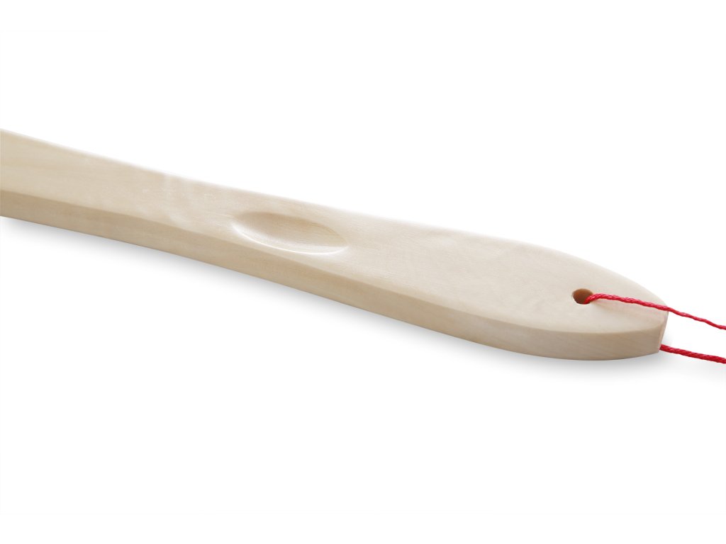 Spatula din lemn are în partea superioară un orificiu prevăzut cu șnur din piele sintetică. Astfel, spatula nu mai trebuie să „zacă” pe raftul pentru pantofi sau pe mobilă și poate fi agățată, pentru a fi mereu la îndemână.
