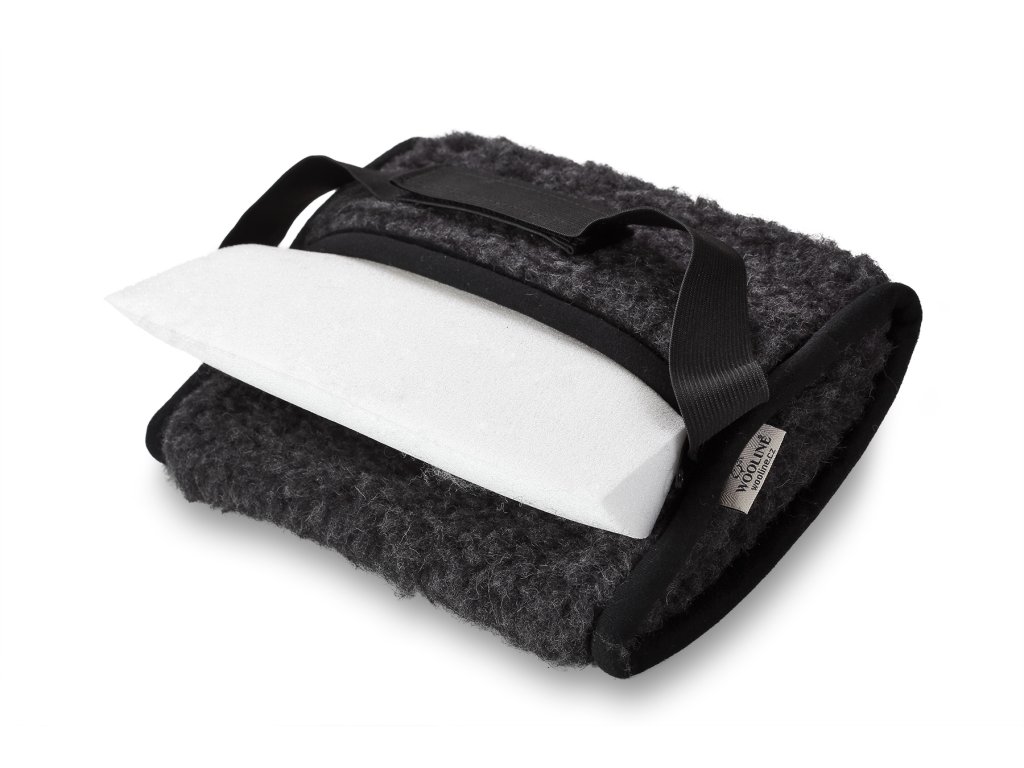 Material înveliș exterior: 100% Merino european (lână de oaie); Material umplutură: Spumă de memorie (spumă leneșă - spumă visco-elastică); Dimensiune: 26 x 19 x 6 cm; Husă lavabilă: DA; Culoare: Negru; Greutatea lânii: 400g/m2