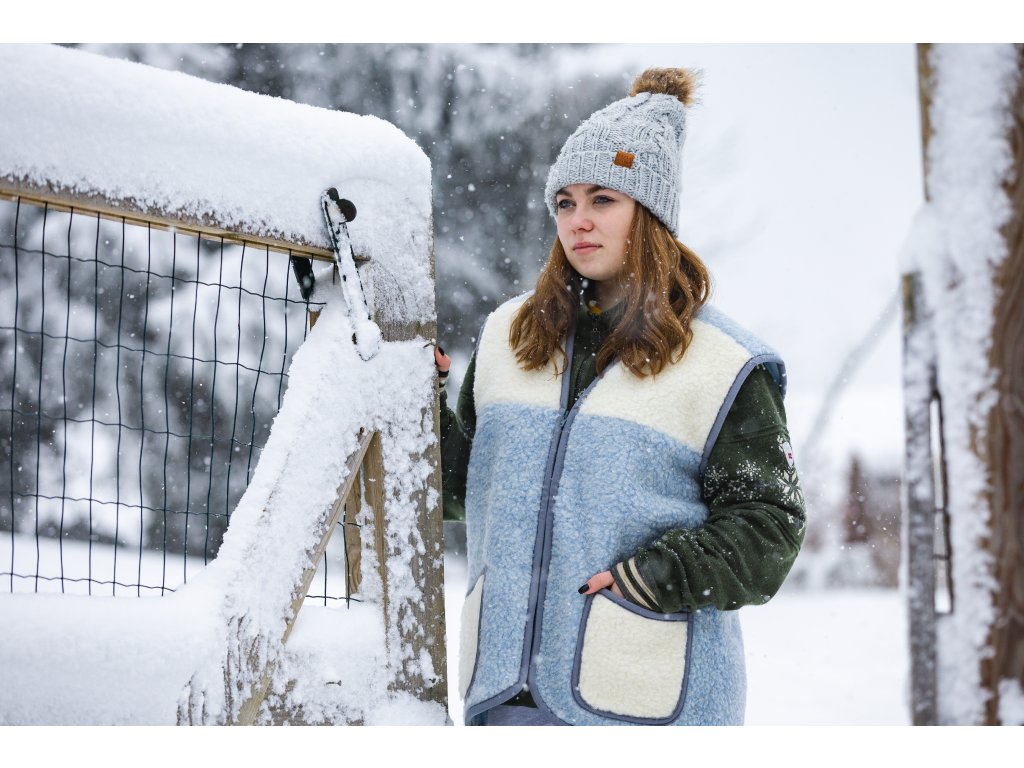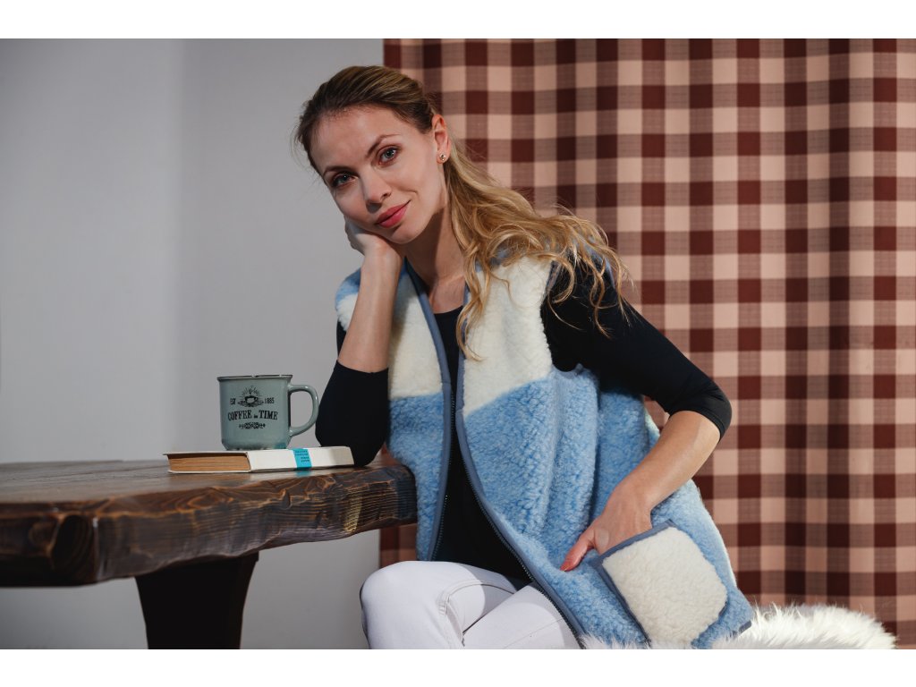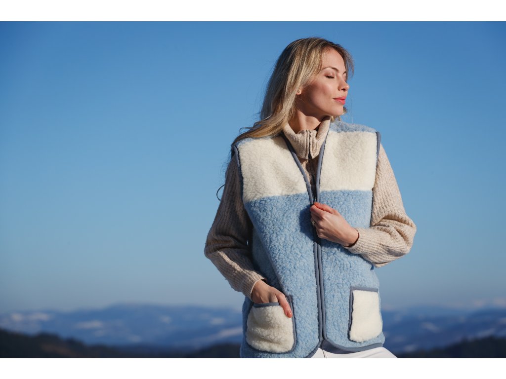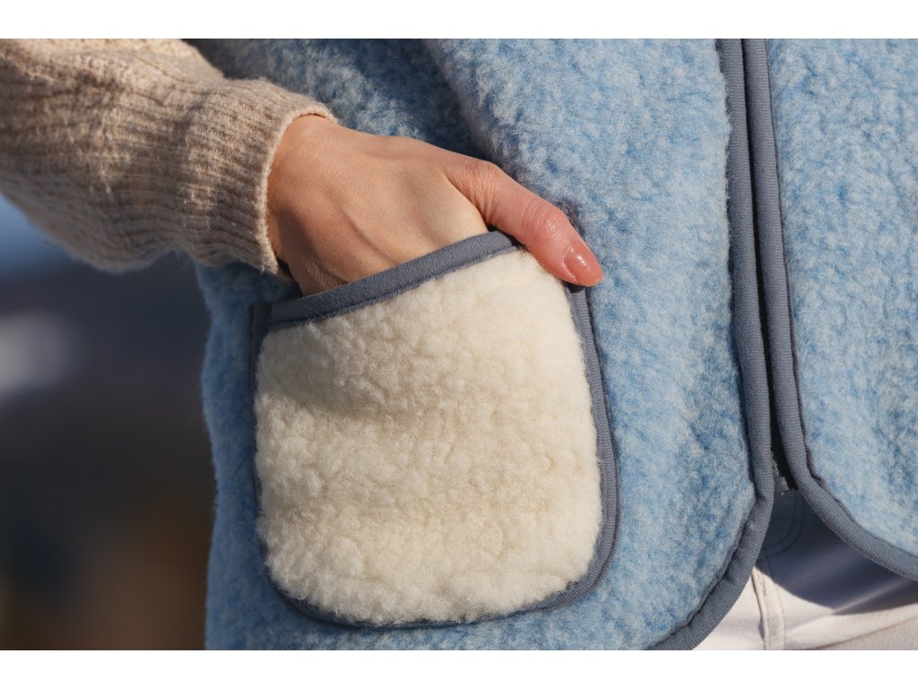 Vesta din lână, în culoarea albastru deschis, lasă o impresie plăcută și elegantă încă de la prima vedere. Datorită croielii bine alese, se potrivește perfect pe corp și arată foarte bine. Un avantaj incontestabil al vestelor din lână Alpen cu fermoar este lungimea lor optimă. Se termină sub talie, acoperind partea inferioară a spatelui, astfel încât vă veți simți confortabil în ele în timpul oricărei activități. Vestele din lână Alpen cu fermoar pot fi folosite nu numai pentru uz casnic, ci și, de exemplu, pentru munca în grădină.
